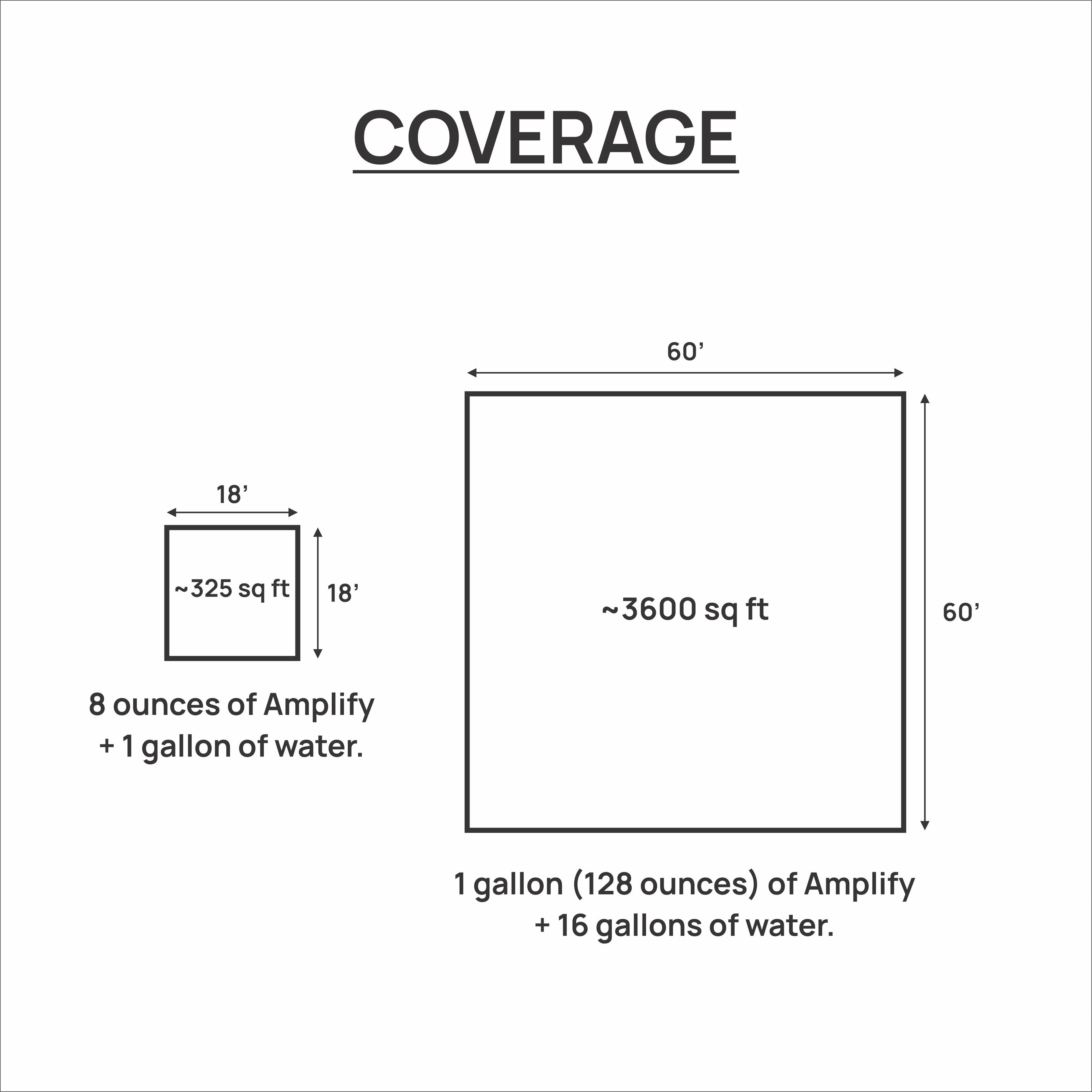 1 gallon of Amplify concentrate mixed into 16 gallons of water covers about 3500 square feet.